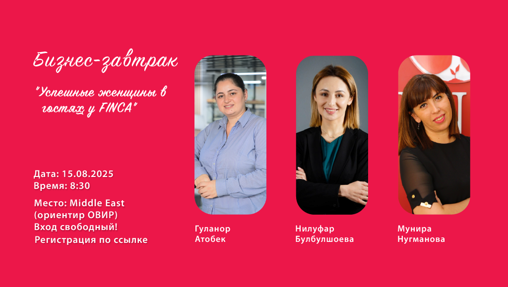 Клуб женщин FINCA рад объявить о проведении бизнес-завтрака, который состоится 15 августа 2025 года в 8:30. Мероприятие пройдет в уютной атмосфере ресторана Middle East (ориентир ОВИР).
